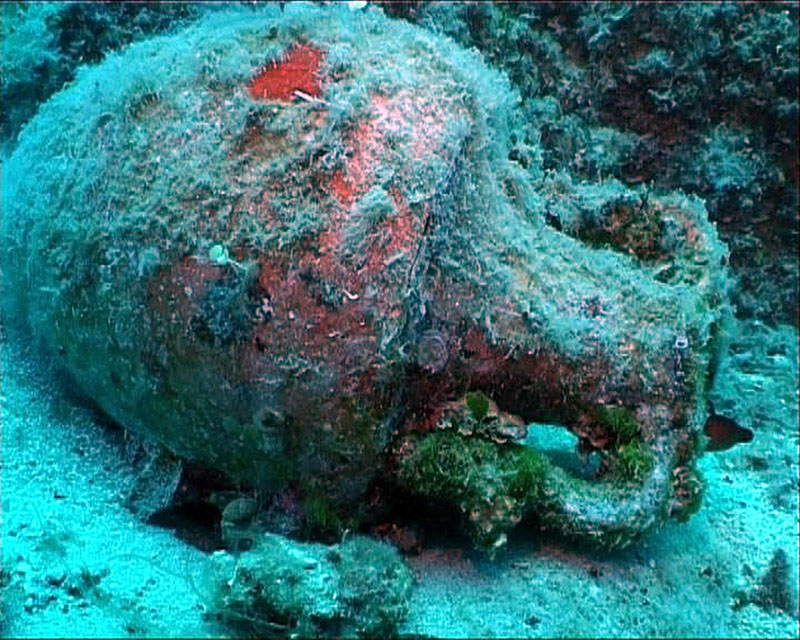 Die Stelle erreicht man ausschließlich mit dem Boot, da sie von der Küste 1 nm entfernt ist. Man ankert im seichten Wasser und taucht ab, indem man sich leicht fallen lässt. Die Stelle ist ihrer Struktur nach verschiedenartig: Steinige Felsen, tiefer befinden sich Gesteinsblöcke und Einsenkungen und auf dem Grund Sand. Auf der inneren Schräge liegt das Stahlschiff, dem die gut erhaltenen Spanten und verstreuten Schiffsteile geblieben sind. Am Grund befinden sich Amphorenstücke, die in Gruppen auch komplett erhalten zu finden sind. Sie wurden zu einem einheitlichen und untrennbaren Teil des Meeresbodens. Wenn das Wetter gut und die Meeresströmungen schwach sind, ist diese Stelle sehr angenehm für das Tauchen.Meeresleben