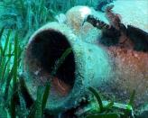 Im seichteren Teil sind Große Drachenköpfe, manch eine Languste, Zweibindenbrassen und größere Schwärme von Mönchfischen und Laxierfischen zu finden. Tiefer gibt es Einsiedlerkrebse, Meeraale, Mittelmeer-Lippfische und Tintenfische, die in den schattigeren Bereichen schlummern. Auf dem Grund im Sand halten sich Tonnenschnecken, Eidechsenfische, Gewöhnliche Petermännchen, Meerbarbenkönige, Mittelmeer-Fahnenbarsche, Meerpfauen sowie Meerjunker auf, die gesetzlich geschützt sind.« zurück