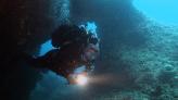 Nach dem Ankern taucht man in eine Tiefe von 25 Metern ab. Den Anfang des Tauchgangs macht die Passage durch die Schlucht und den Tunnel interessant, und danach lässt man sich an der östlichen Seite des Riffs bis in 40 Meter Tiefe herab, wobei technische Taucher bis zu 55 Meter tauchen können.Meeresleben